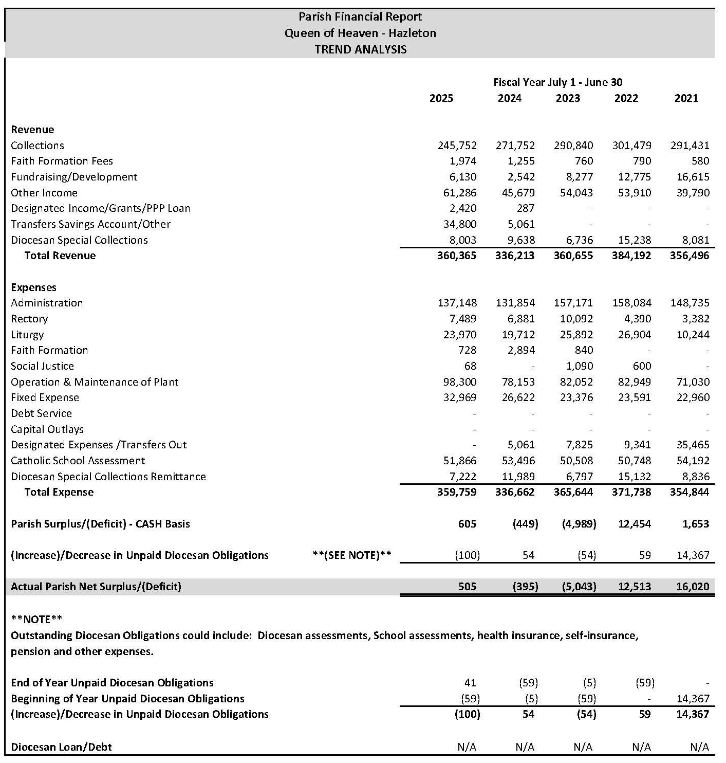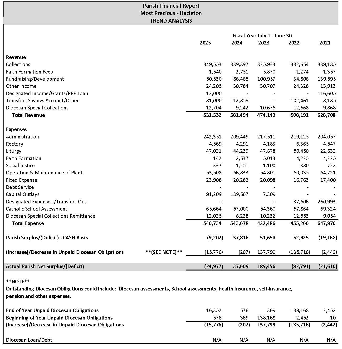 For Parish Financial Reports and Statistics please scroll to the bottom of the page.